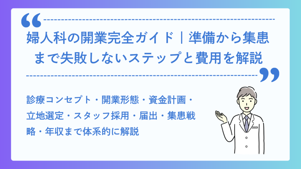婦人科の開業完全ガイド|準備から集患まで失敗しないためのステップと費用・年収の全解説
