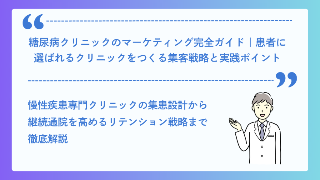 糖尿病クリニックのマーケティング完全ガイド|患者に選ばれるクリニックをつくる集客戦略と実践ポイント