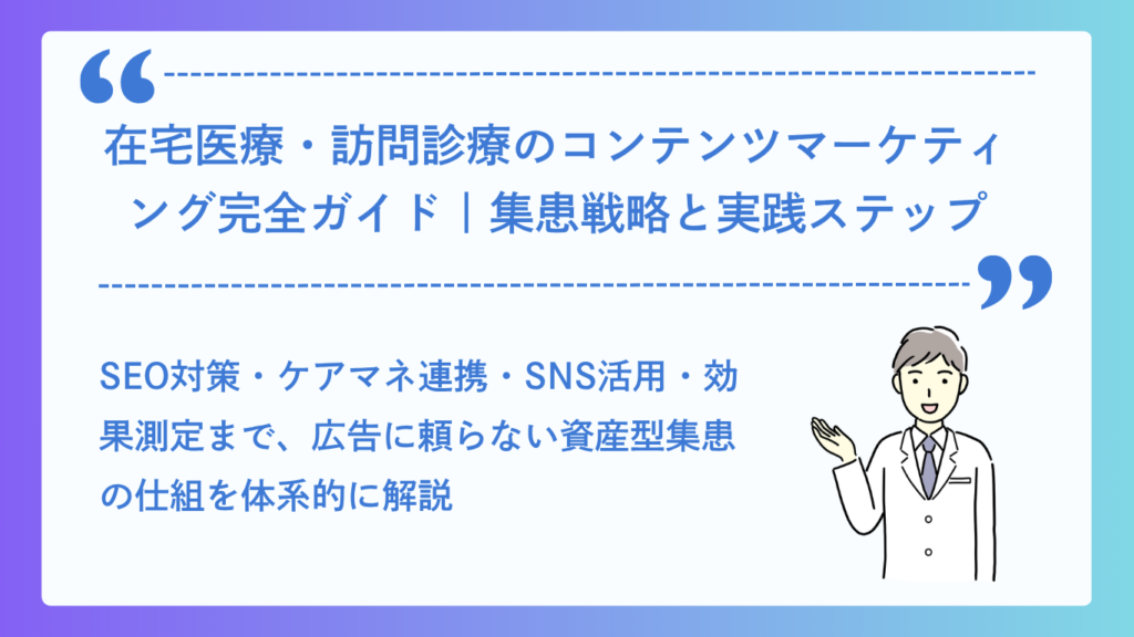 在宅医療・訪問診療のコンテンツマーケティング完全ガイド|選ばれるクリニックをつくる集患戦略と実践ステップ