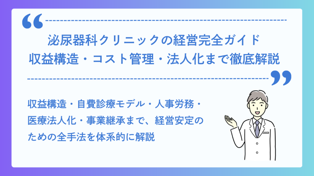 泌尿器科クリニックの経営完全ガイド|収益構造の理解からコスト管理・人事労務・法人化・経営改善まで