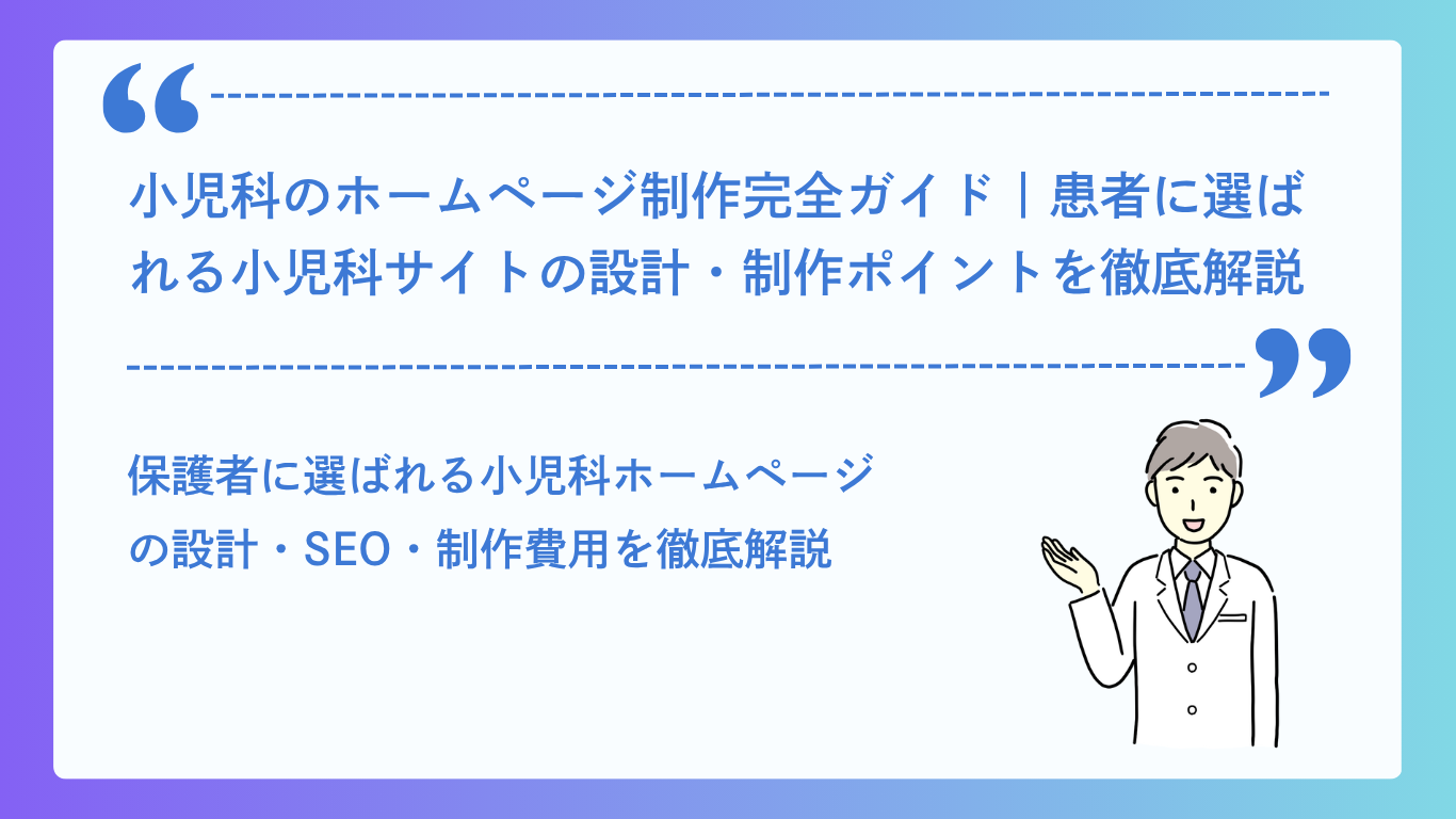 小児科のホームページ制作完全ガイド|患者に選ばれる小児科サイトの設計・制作ポイントを徹底解説