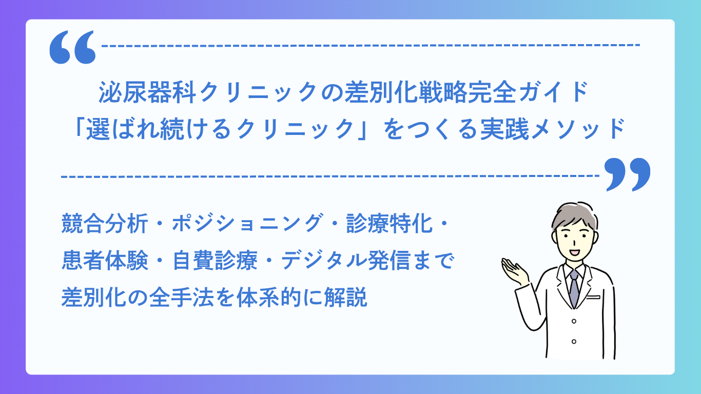 泌尿器科クリニックの差別化戦略完全ガイド|競合に打ち勝ち「選ばれ続けるクリニック」をつくる実践メソッド